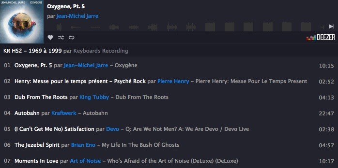 Retrouvez et écoutez le Top 100 des albums de musique électronique incontournables issu du hors-série n°2, 100% Production électro, actuellement en kiosque. Ce Top 100 a été divisé en deux parties et ne contient que les albums présents sur Deezer. Cette playlist, première partie qui couvre 1969 à 1999, est à écouter ici