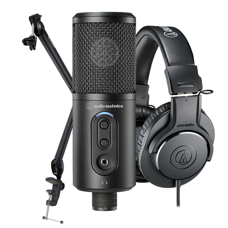 Il se compose du microphone USB à condensateur ATR2500x-USB, de la nouvelle version du casque de monitoring ATH-M20x, du bras articulé avec gestion du câblage et d’un support micro sur trépied.