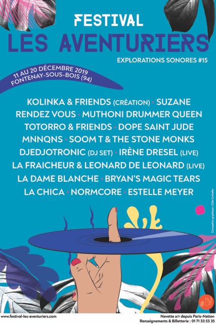 | – 11 décembre – 20h – Espace Gérard Philippe La Dame Blanche + Soom T & The Stone Monks – 12 décembre – 20h – Espace Gérard Philippe Normcore + Bryan’s Magic Tears + Totorro & Friends – 13 décembre – 20h – Espace Gérard Philippe Dope Saint Jude + Muthoni Drummer Queen – 14 décembre – 15h30 – Médiathèque Louis Aragon – Entrée libre Table ronde par Éric Tandy « Les Aventuriers : L’épopée du Festival » – 14 décembre – 17h – Médiathèque Louis Aragon – Entrée libre Estelle Meyer – 14 décembre – 17h – Espace Gérard Philippe La Fraicheur & Léonard Léonard + Irène Dresel + Djedjotronic – 16 décembre – 20h30 – Cinéma Le Kosmos Haut Les Filles – Documentaire de François Armanet – 17 décembre – 20h – Espace Gérard Philippe La Chica + Suzane – 18 décembre – 20h – Espace Gérard Philippe MNNQNS + Rendez Vous – 20 décembre – 20h – Salle Jacques Brel Kolinka & Friends avec Cali – Mademoiselle K – Bachar Mar Khalife – Jeanne Cherhal – Stephan Eicher – Xam Hurricane |