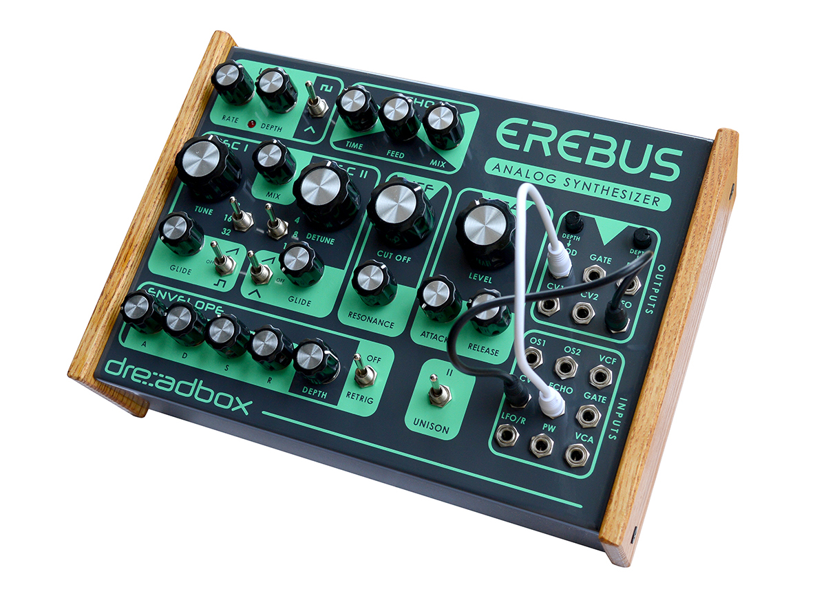 En continuant à remonter dans le temps, il était logique qu’on finisse un jour par aboutir aux premiers synthétiseurs qui furent, comme chacun le sait, des modulaires. Qui aurait pensé, il y a quelques années encore, que nous aurions de nouveau à nous pencher sur des boîtiers avec de vrais potentiomètres circulaires et des patchs comme dans le lointain passé ? Mais d’abord comprenons bien de quoi nous parlons. Les « modulaires » apparus au début des années 60 ont été développés par des électroniciens de renom comme Robert Moog ou Don Buchla sur le principe de blocs totalement indépendants (VCO, VCF, EG, LFO…) pouvant être reliés (patchés) entre eux par des câbles. On parlera de semi-modulaire quand ces modules sont pré-câblés, comme ce fut la plupart du temps le cas. Dreadbox, la jeune société grecque qui assemble des gros modulaires depuis 2012 avec les Modular Systems en format Eurorack (comme quoi, il n’y a pas que la crise…), développe à présent deux petits synthés compacts, l’Erebus et l’Hades, ainsi qu’une ligne d’effets semi-modulaires que nous développerons plus loin…