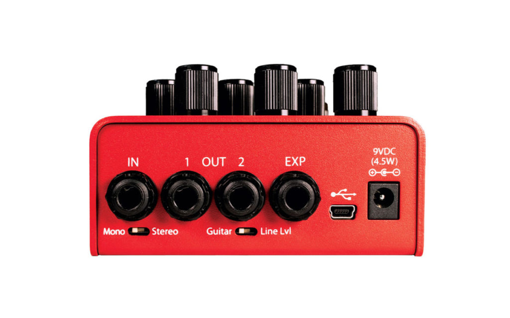 Le MicroPitch Delay s’alimente en 9V, pèse environ 500 gr., propose une entrée mono / stéréo sur jack TRS, une paire de sorties (jacks TS mono), une entrée pour pédale d’expression externe et une prise mini USB pour les mises à jour et la gestion MIDI.
