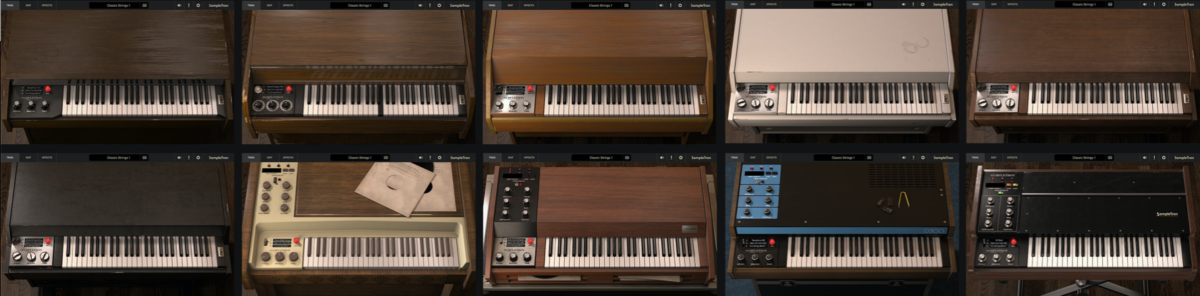 SampleTron 2 est livré avec une bibliothèque de plus de 400 « pistes » que les utilisateurs peuvent charger dans n’importe quel preset, jusqu’à 3 à la fois.