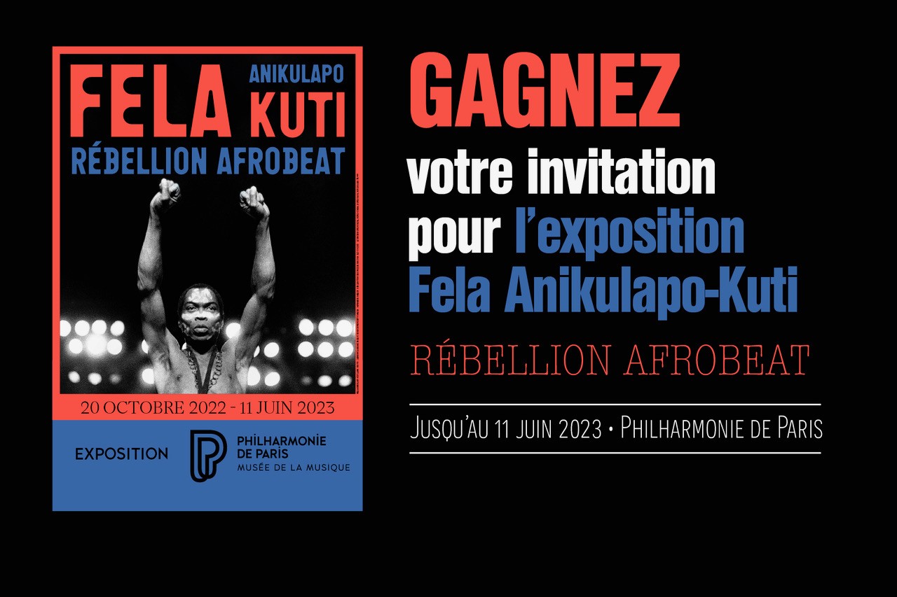 La Philharmonie de Paris accueille jusqu’au 11 juin 2023 une conséquente exposition consacrée au maître et inventeur de l’afrobeat : Fela Anikulapo-Kuti. Sous-titrée, « Rébellion afrobeat », l’exposition a été conçue avec le soutien de sa famille et de ses proches collaborateurs. Une trentaine de tenues de scène sont exposées, des photographies, des archives inédites… sans oublier son parcours musical, avec le son de Lagos, la salle mythique du Shrine et la diffusion d’un concert au festival de jazz de Berlin en 1978. En parallèle de l’exposition, le 19 octobre 2022, Femi Kuti était décoré Chevalier des Arts et des Lettres, par madame la Ministre Rima Abdul Malak.