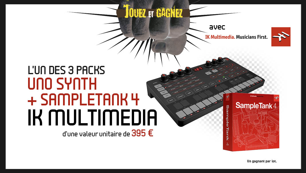 Suite à un problème technique, l’inscription au jeu-concours du numéro 345, mai-juin, ne fonctionnait plus. La page est à nouveau active et nous vous invitons à vous inscrire dès maintenant pour tenter de gagner l’un des 3 packs IK Multimedia Uno Synth + Sampletank 4 mis en jeu.