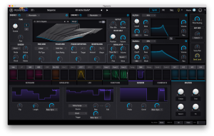 Au programme : double moteur de synthèse (« Virtual Analog » et à tables d’ondes), modulation de fréquences, modulation et distorsion de phase, import de ses propres tables d’ondes, les meilleurs filtres d’Arturia, séquenceur, arpégiateur polyrythmique, multi-effets, et surtout une nouvelle approche visuelle et intuitive de la modulation. Pigments est un semi-modulaire, où la matrice de modulation est remplacée par une astucieuse interface permettant le routage et la visualisation des signaux mis en oeuvre. Un formidable outil d’apprentissage de la synthèse et un synthétiseur très prometteur.