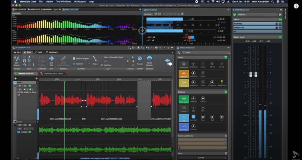 WaveLab Cast comprend de nombreux outils de traitement des signaux, notamment un Voice Exciter, un compresseur et un limiteur de type BrickWall.