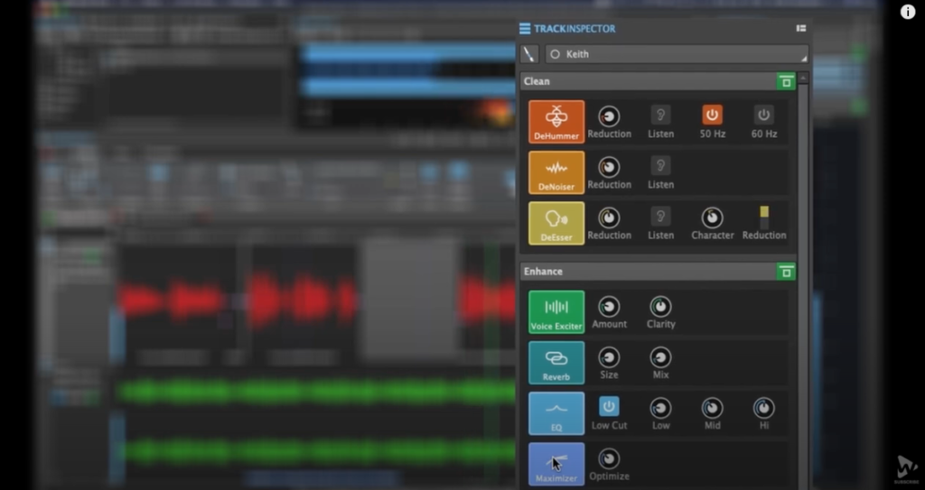 Le musicien peut appliquer un effet de ducking automatique lorsqu’une voix parlée est détectée et Track Inspector procure une égalisation deux bandes simple.