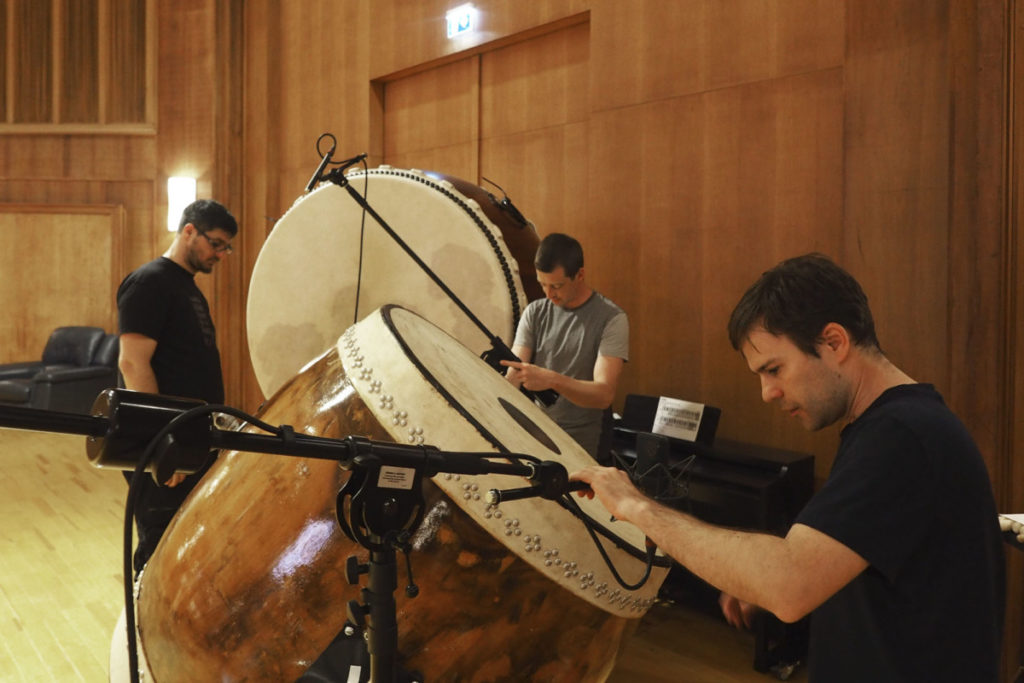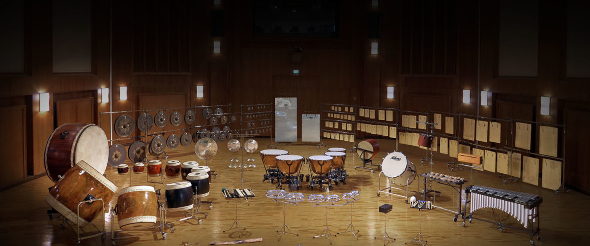 Cinq timbales d’orchestre Adams, dix taikos et six roto-toms Kolberg, une seconde grosse caisse d’orchestre Lefima, trois tam-tams, un set complet de gongs birmans (de do2 à do6) et sept gongs chinois, vibraphone Musser, crotales (de do6 à do8), plate bells (de do2 à do7), trois temple bells, et tout un arsenal de percussions bruitistes dont plusieurs évoquant la nature (thundersheets, wind machine, rainmaker, lion’s roar etc.) sont au rendez-vous.