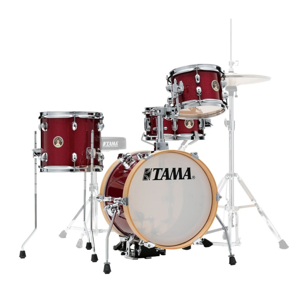 Pour les impénitents écumeurs de petits clubs, on découvre également un kit ultra compact : le Club Jam Flyer. Il est doté d’un look plutôt vintage, rappelant celui des kits jazz des années 60, avec notamment un clamp sur la grosse caisse permettant de fixer une ride. Avec une grosse caisse de 14″ x 10″, un medium de 8″ x 6″, un floor de 10″ x 9″ et une snare de 10″ x 5″, il pourra se faufiler partout, tout en bénéficiant d’un son puissant.